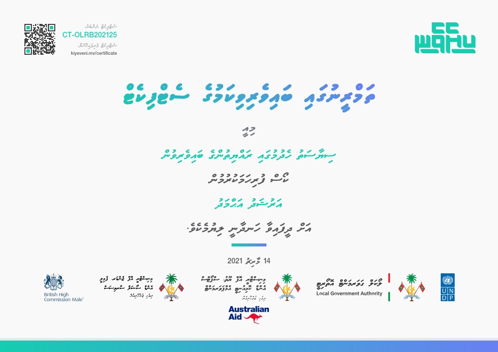 ވަނީ 14 މާރިޗު 2021 ގައި "ސިޔާސަތު ހެދުމުގައި ރައްޔިތުންގެ ބައިވެރިވުން" ކޯސް ފުރިހަމަކޮށްފައި